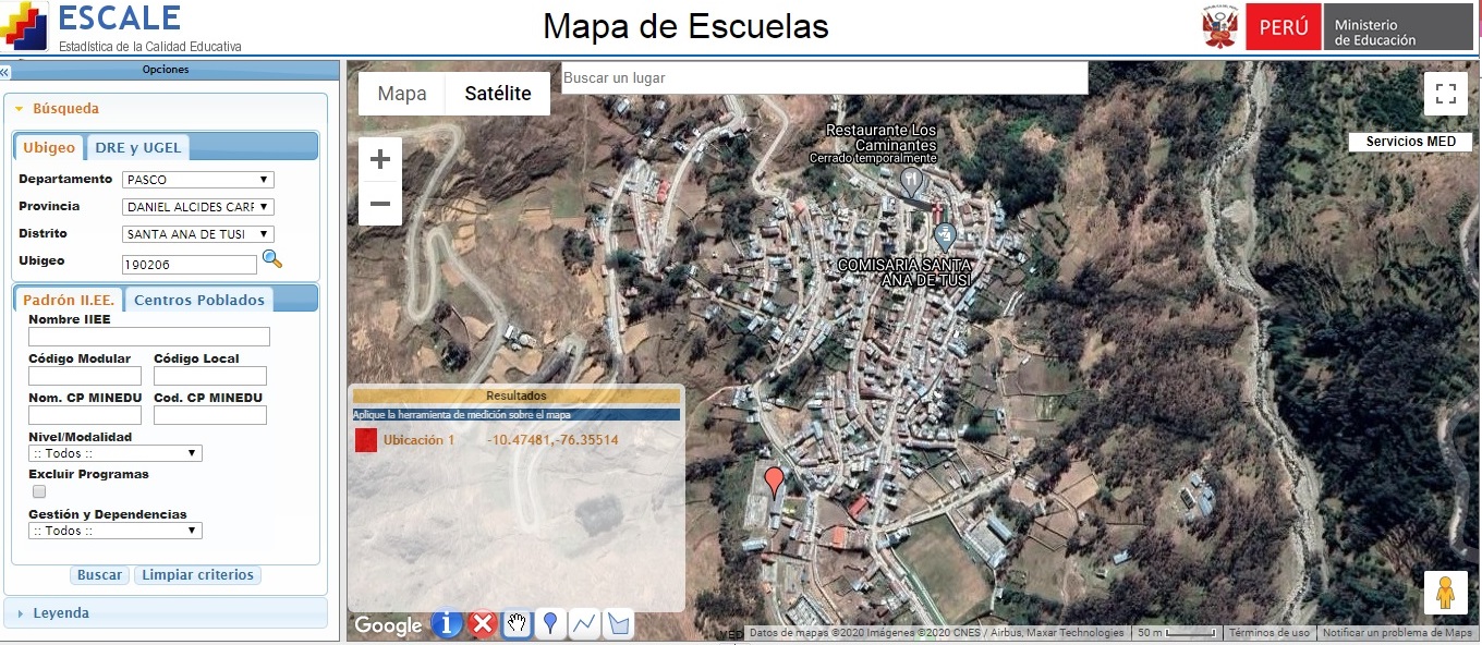 Ubicacion de a I.E. General Cordova - Santa Ana de Tusi